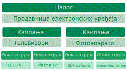 засебне огласне групе за ове групе кључних речи и да имате одређене огласе за „фотоапарате“, односно „телевизоре“, са посебним текстом огласа за сваки од ових категорија.