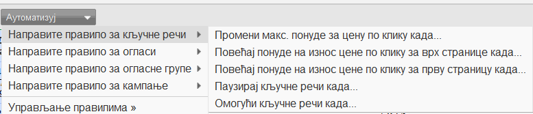 Да бисте видели неке од популарних аутоматских правила које наши оглашавачи већ користе како би олакшали управљање AdWords налогом и уштедели време, посетите