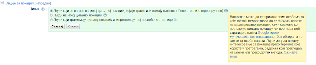 Имајте у виду да напредно циљање локације може да ограничи видљивост огласа, тако да није прикладна за све циљеве оглашавања.